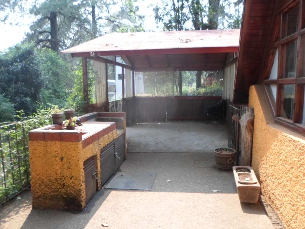 RENTA-VENTA En un agradable entorno de bosque acogedor chalet con estudio independiente, agradables jardines... asador con palapa techada para disfrutar en familia, cuenta con sala-comedor, práctica cocina con amplia barra desayunador, baño completo en PB y una recámara. En PA área de TV, recámara y closet, Esperamos su visita...