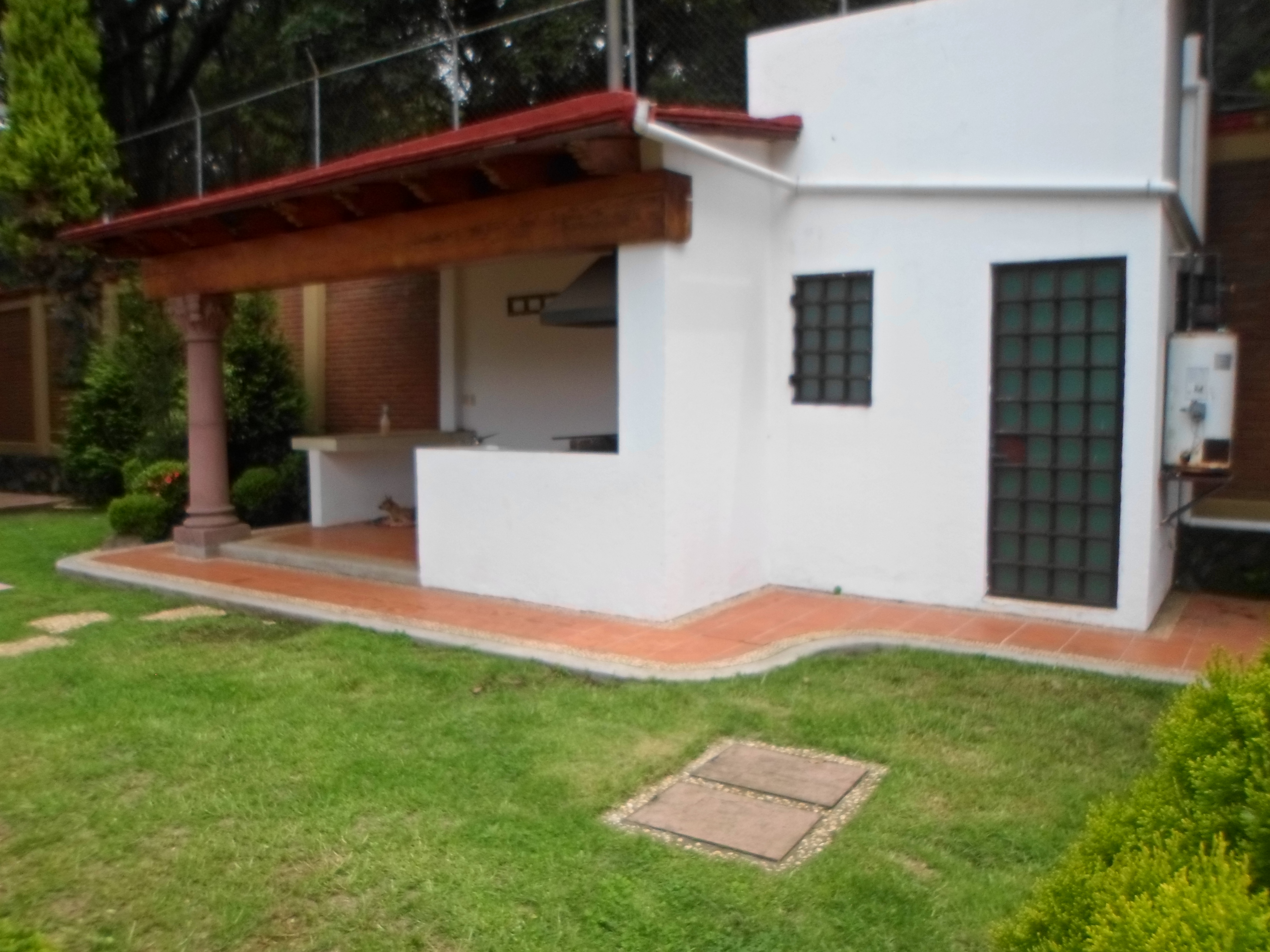 EN ENTORNO DE BOSQUE FRACCIONAMIENTO RÚSTICO, JARDÍN Y TERRENO TOTALMENTE PLANO, AMPLIA CASA EN 3 NIVELES EST. 8 AUTOS PORTÓN ELÉCTRICO PALAPA TECHADA... CON ASADOR Y BAÑO COMPLETO, COCINETA EXTERIOR. EN PB, CUENTA CON AMPLIA SALA-COMEDOR BAÑO COMPLETO, COCINA EQUIPADA CON BARRA Y ALACENA ACCESO AL ÁREA DE LAVADO. 1ER NIVEL 4 RECÁMARAS CON CLOSET TODAS, LA PRINCIPAL CON BAÑO COMPLETO Y TINA, OTRO BAÑO PARA EL RESTO DE RECÁMARAS. 2DO NIVEL AMPLIO ESTUDIO CON VISTA PONORÁMICAJ MUY BIEN ILUMINADO.