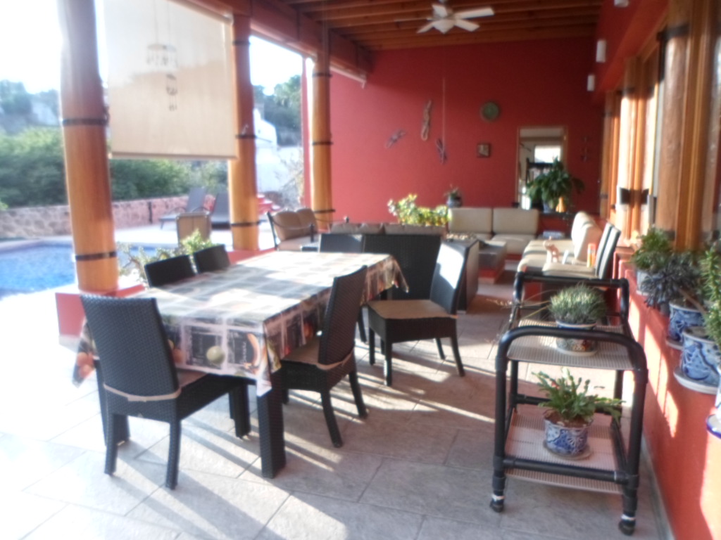 En exclusivo fraccionamiento, privacidad, seguridad, vigilancia, clima cálido vista panorámica.... bella residencia en diferentes niveles excelente proyecto para disfrutar de la vista y el clima sus recámaras cómodas amplias con su baño y vestidor cada una de ellas, su cocina totalmente equipada práctica y funcional, sala y comedor con acceso al jardín, las áreas para compartir proyectadas para disfrutar de cada espacio jardín con arboles frutales, palapa y alberca in palabras para describirlas le espera.....